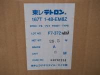 150デニール48フィラメントの東レテトロン167T1-48 EM8Z生成。ポリエステル100%、色は生成り。重量29.5キロ/6本。キロ300円でお買い得。数量購入で値引きあり。