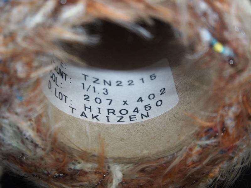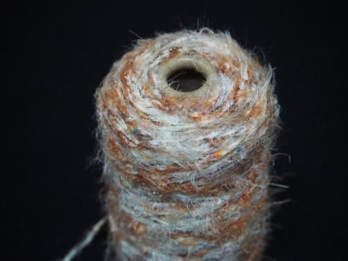 ショートピッチのブラウン/ホワイトの絣糸の撚り糸です