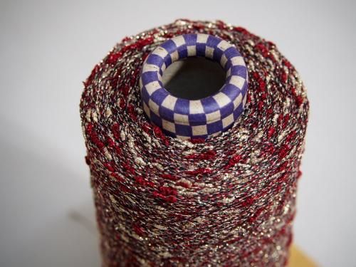 ラメ入りノットヤーン エンジ&ゴールド 15番手 150g巻