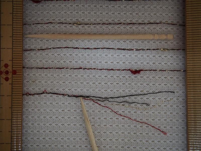 合繊糸4本でエンジ&ゴールドのノット加工