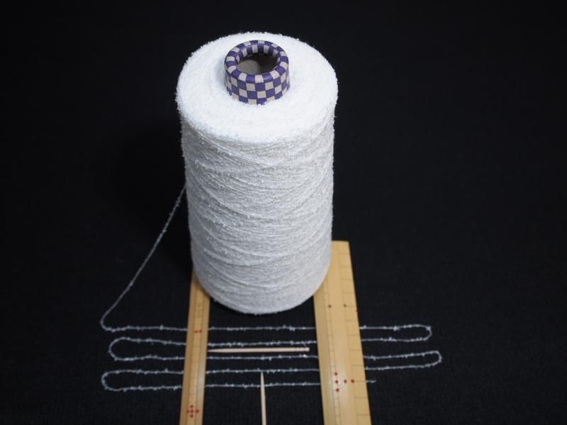 ループ糸にホワイトフィルムを絡ませた高級ニット糸です。