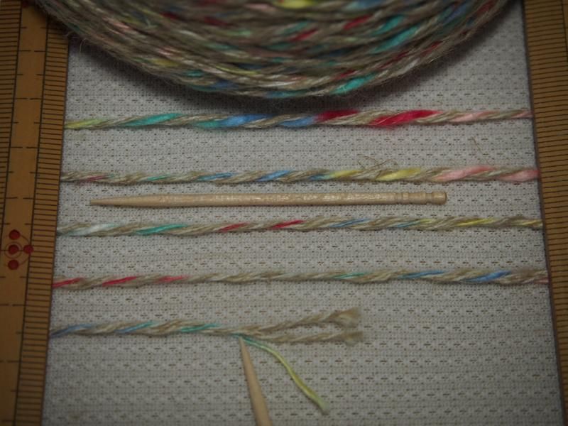 アクリル絣スラブ糸と綿加工糸2本のニット糸です