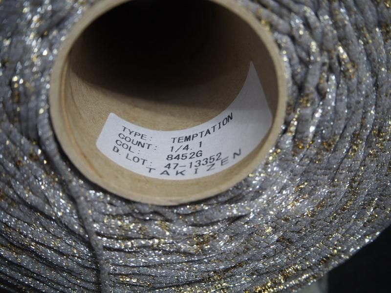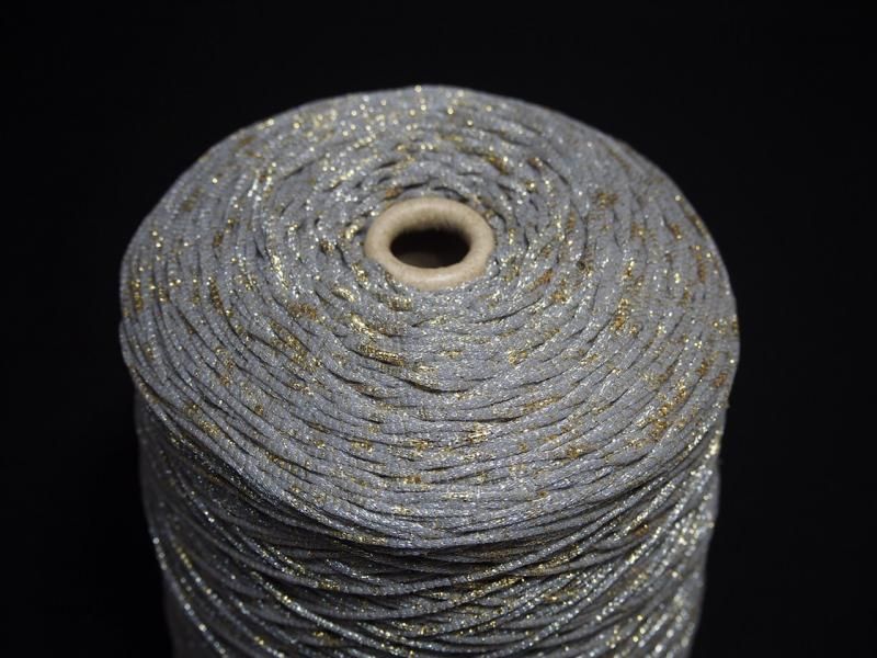 ナイロン丸モールをゴールドラメで包み編みした魅力的な糸です